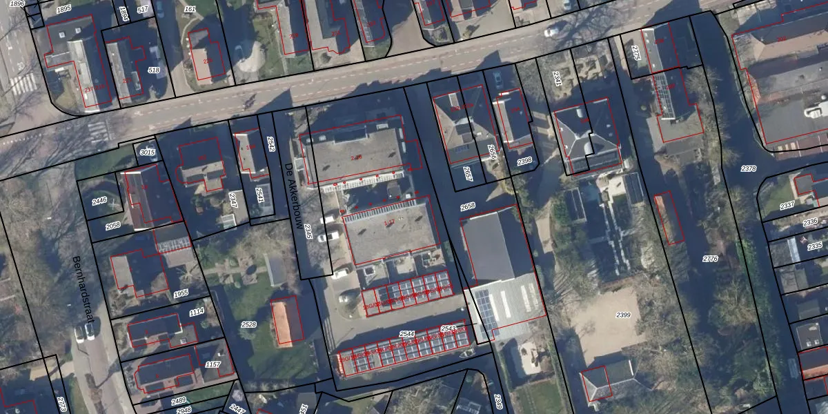 Het perceel waarop De Akkerbouw 13 staat heeft een oppervlakte van 2105 m². Dit is een zeer groot perceel. De perceeloppervlakte wordt geregistreerd door het Kadaster. Gedetailleerde informatie over de maten van dit perceel kunt u vinden in het rapport Kadastrale kaart met maatvoering van De Akkerbouw 13.