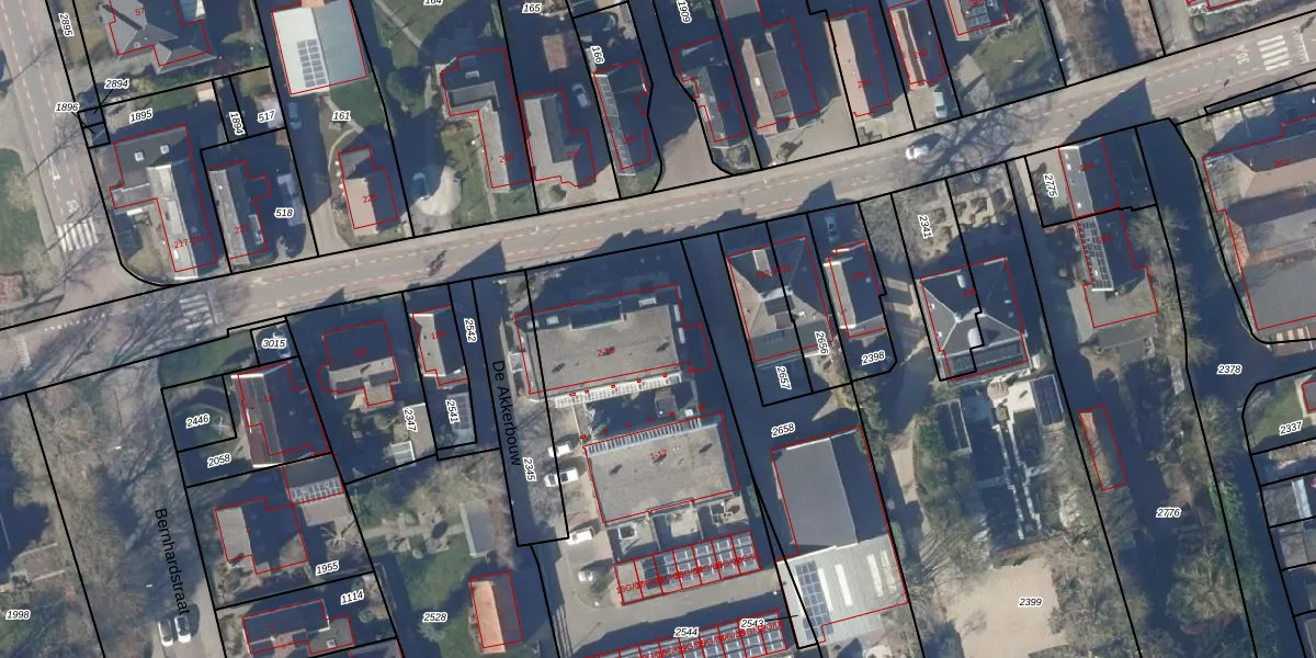 Het perceel waarop De Akkerbouw 8 staat heeft een oppervlakte van 2105 m². Dit is een zeer groot perceel. De perceeloppervlakte wordt geregistreerd door het Kadaster. Gedetailleerde informatie over de maten van dit perceel kunt u vinden in het rapport Kadastrale kaart met maatvoering van De Akkerbouw 8.