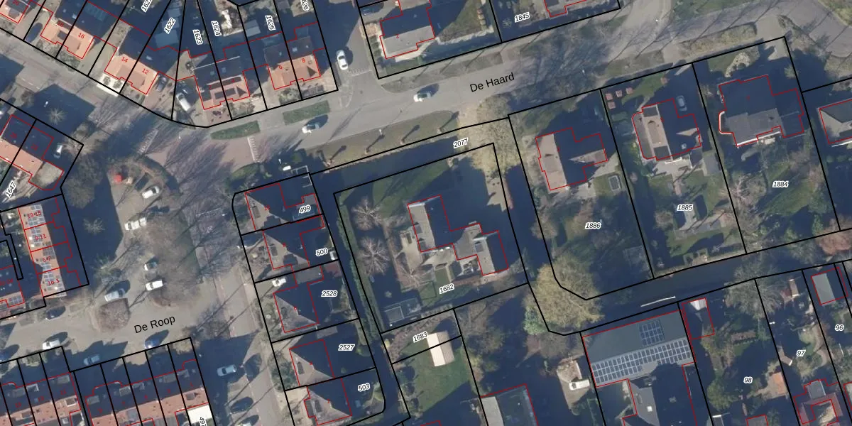 Het perceel waarop De Haard 1 staat heeft een oppervlakte van 1300 m². Dit is een zeer groot perceel. De perceeloppervlakte wordt geregistreerd door het Kadaster. Gedetailleerde informatie over de maten van dit perceel kunt u vinden in het rapport Kadastrale kaart met maatvoering van De Haard 1.