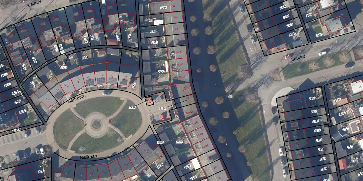 Het perceel waarop Laurier 34 staat heeft een oppervlakte van 721 m². Dit is een groot perceel. De perceeloppervlakte wordt geregistreerd door het Kadaster. Gedetailleerde informatie over de maten van dit perceel kunt u vinden in het rapport Kadastrale kaart met maatvoering van Laurier 34.