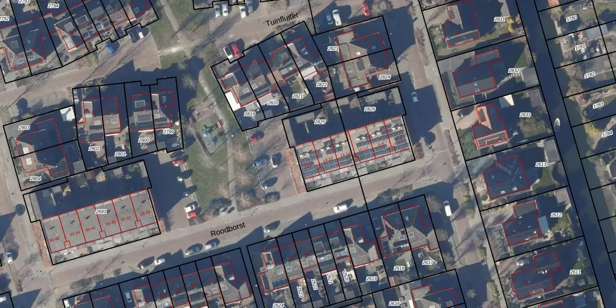 Het perceel waarop Roodborst 24 staat heeft een oppervlakte van 450 m². Dit is een groot perceel. De perceeloppervlakte wordt geregistreerd door het Kadaster. Gedetailleerde informatie over de maten van dit perceel kunt u vinden in het rapport Kadastrale kaart met maatvoering van Roodborst 24.