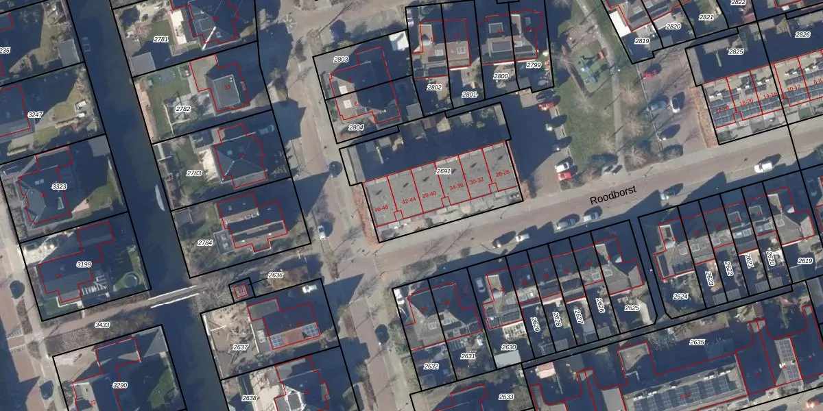 Het perceel waarop Roodborst 42 staat heeft een oppervlakte van 960 m². Dit is een groot perceel. De perceeloppervlakte wordt geregistreerd door het Kadaster. Gedetailleerde informatie over de maten van dit perceel kunt u vinden in het rapport Kadastrale kaart met maatvoering van Roodborst 42.