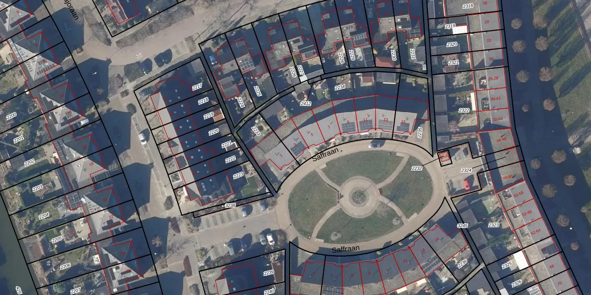 Het perceel waarop Saffraan 3 staat heeft een oppervlakte van 964 m². Dit is een groot perceel. De perceeloppervlakte wordt geregistreerd door het Kadaster. Gedetailleerde informatie over de maten van dit perceel kunt u vinden in het rapport Kadastrale kaart met maatvoering van Saffraan 3.