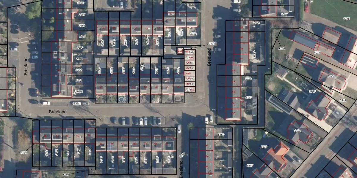 Het perceel waarop Breeland 50 staat heeft een oppervlakte van 160 m². Dit is een middelgroot perceel. De perceeloppervlakte wordt geregistreerd door het Kadaster. Gedetailleerde informatie over de maten van dit perceel kunt u vinden in het rapport Kadastrale kaart met maatvoering van Breeland 50.