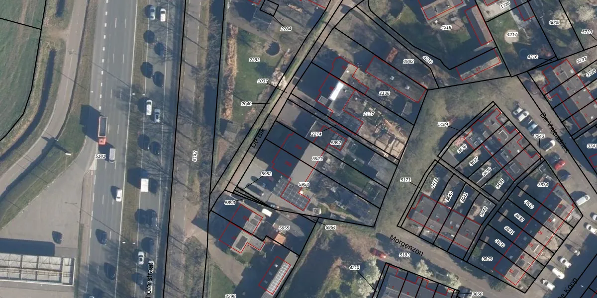 Gebruik de zoekbalk of klik op een perceel voor informatie over de adressen binnen dit perceel.