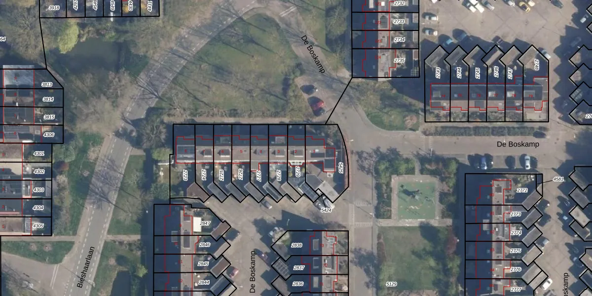Gebruik de zoekbalk of klik op een perceel voor informatie over de adressen binnen dit perceel.