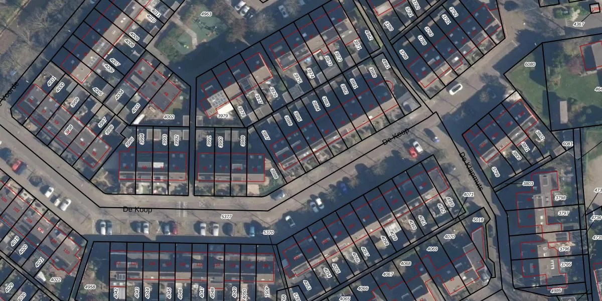 Het perceel waarop De Koop 85 staat heeft een oppervlakte van 123 m². Dit is een middelgroot perceel. De perceeloppervlakte wordt geregistreerd door het Kadaster. Gedetailleerde informatie over de maten van dit perceel kunt u vinden in het rapport Kadastrale kaart met maatvoering van De Koop 85.