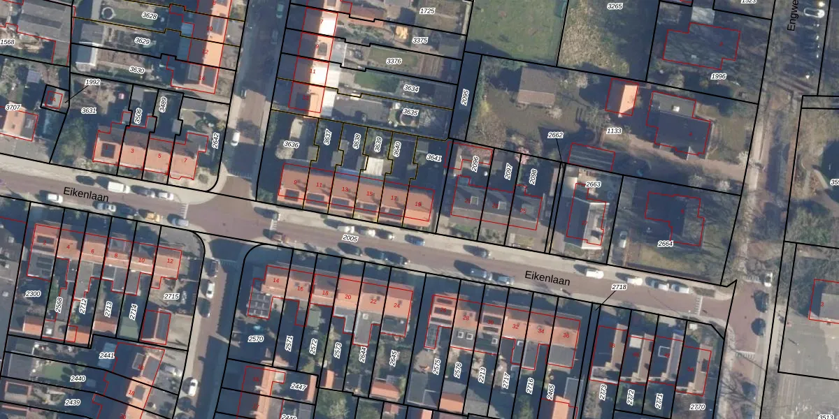 Gebruik de zoekbalk of klik op een perceel voor informatie over de adressen binnen dit perceel.