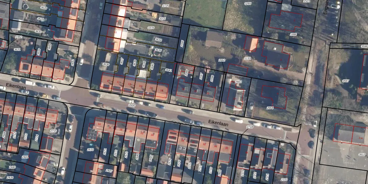Het perceel waarop Eikenlaan 21 staat heeft een oppervlakte van 223 m². Dit is een middelgroot perceel. De perceeloppervlakte wordt geregistreerd door het Kadaster. Gedetailleerde informatie over de maten van dit perceel kunt u vinden in het rapport Kadastrale kaart met maatvoering van Eikenlaan 21.