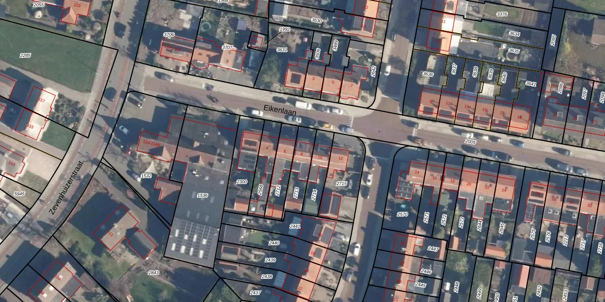 Het perceel waarop Eikenlaan 8 staat heeft een oppervlakte van 169 m². Dit is een middelgroot perceel. De perceeloppervlakte wordt geregistreerd door het Kadaster. Gedetailleerde informatie over de maten van dit perceel kunt u vinden in het rapport Kadastrale kaart met maatvoering van Eikenlaan 8.