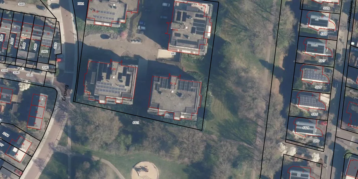 Het perceel waarop Engweg 57 staat heeft een oppervlakte van 5005 m². Dit is een zeer groot perceel. De perceeloppervlakte wordt geregistreerd door het Kadaster. Gedetailleerde informatie over de maten van dit perceel kunt u vinden in het rapport Kadastrale kaart met maatvoering van Engweg 57.