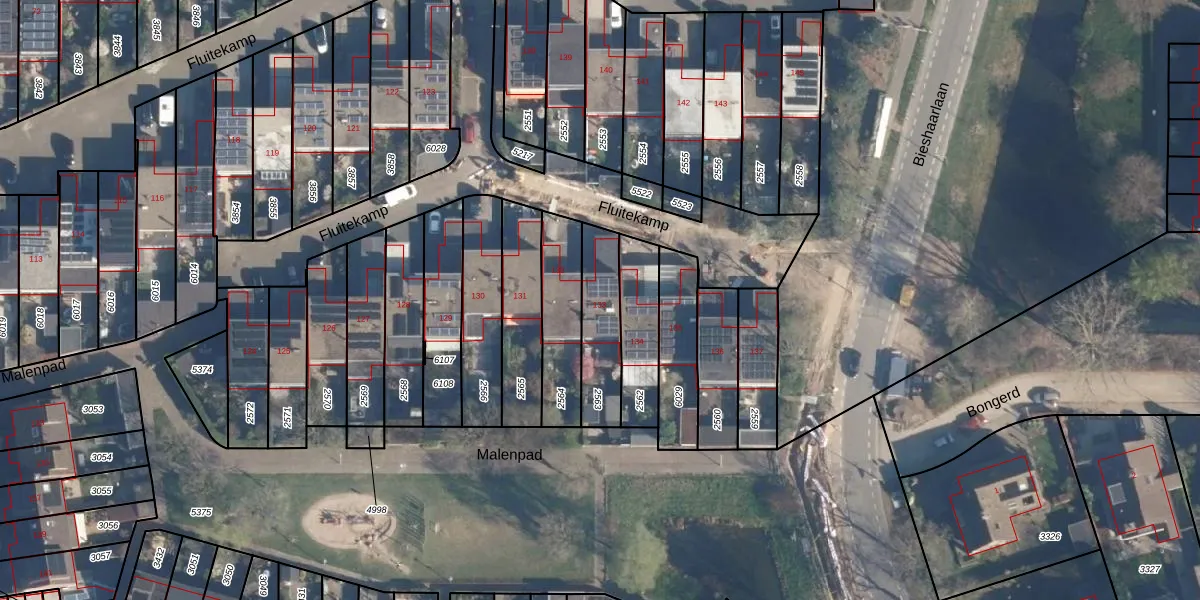 Gebruik de zoekbalk of klik op een perceel voor informatie over de adressen binnen dit perceel.