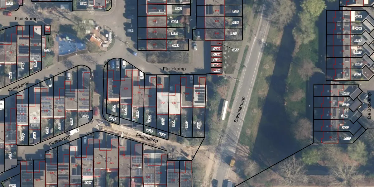 Fluitekamp 144 is gelegen op kadastraal perceel HLD02E2557. Deze kadastrale aanduiding is uniek en wordt gebruikt door het Kadaster om eigendomsrechten en andere zakelijke rechten vast te leggen. Het perceel maakt onderdeel uit van de kadastrale gemeente Hoogland.