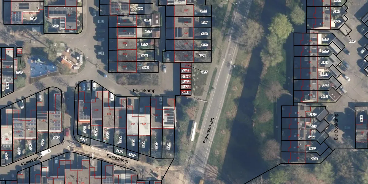Het perceel waarop Fluitekamp 145-1 staat heeft een oppervlakte van 19 m². Dit is een klein perceel. De perceeloppervlakte wordt geregistreerd door het Kadaster. Gedetailleerde informatie over de maten van dit perceel kunt u vinden in het rapport Kadastrale kaart met maatvoering van Fluitekamp 145-1.
