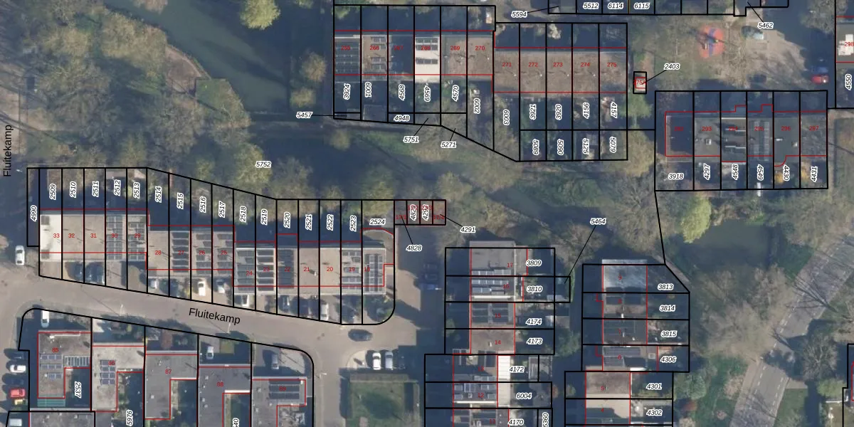 Het perceel waarop Fluitekamp 17-3 staat heeft een oppervlakte van 18 m². Dit is een klein perceel. De perceeloppervlakte wordt geregistreerd door het Kadaster. Gedetailleerde informatie over de maten van dit perceel kunt u vinden in het rapport Kadastrale kaart met maatvoering van Fluitekamp 17-3.