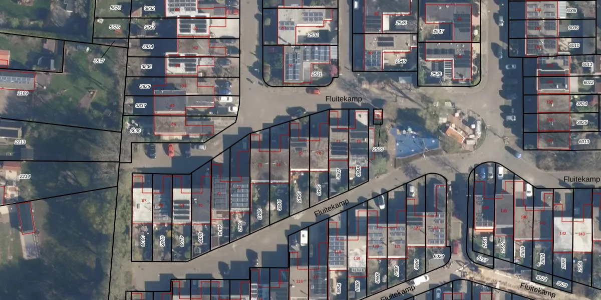 Het perceel waarop Fluitekamp 75 staat heeft een oppervlakte van 202 m². Dit is een middelgroot perceel. De perceeloppervlakte wordt geregistreerd door het Kadaster. Gedetailleerde informatie over de maten van dit perceel kunt u vinden in het rapport Kadastrale kaart met maatvoering van Fluitekamp 75.