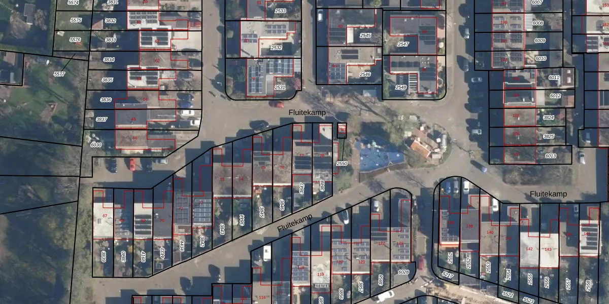 Het perceel waarop Fluitekamp 77 staat heeft een oppervlakte van 185 m². Dit is een middelgroot perceel. De perceeloppervlakte wordt geregistreerd door het Kadaster. Gedetailleerde informatie over de maten van dit perceel kunt u vinden in het rapport Kadastrale kaart met maatvoering van Fluitekamp 77.