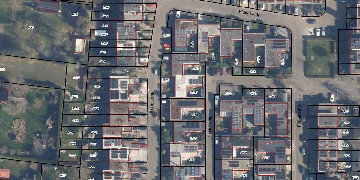 Fluitekamp 83 is gelegen op kadastraal perceel HLD02E2535. Deze kadastrale aanduiding is uniek en wordt gebruikt door het Kadaster om eigendomsrechten en andere zakelijke rechten vast te leggen. Het perceel maakt onderdeel uit van de kadastrale gemeente Hoogland.