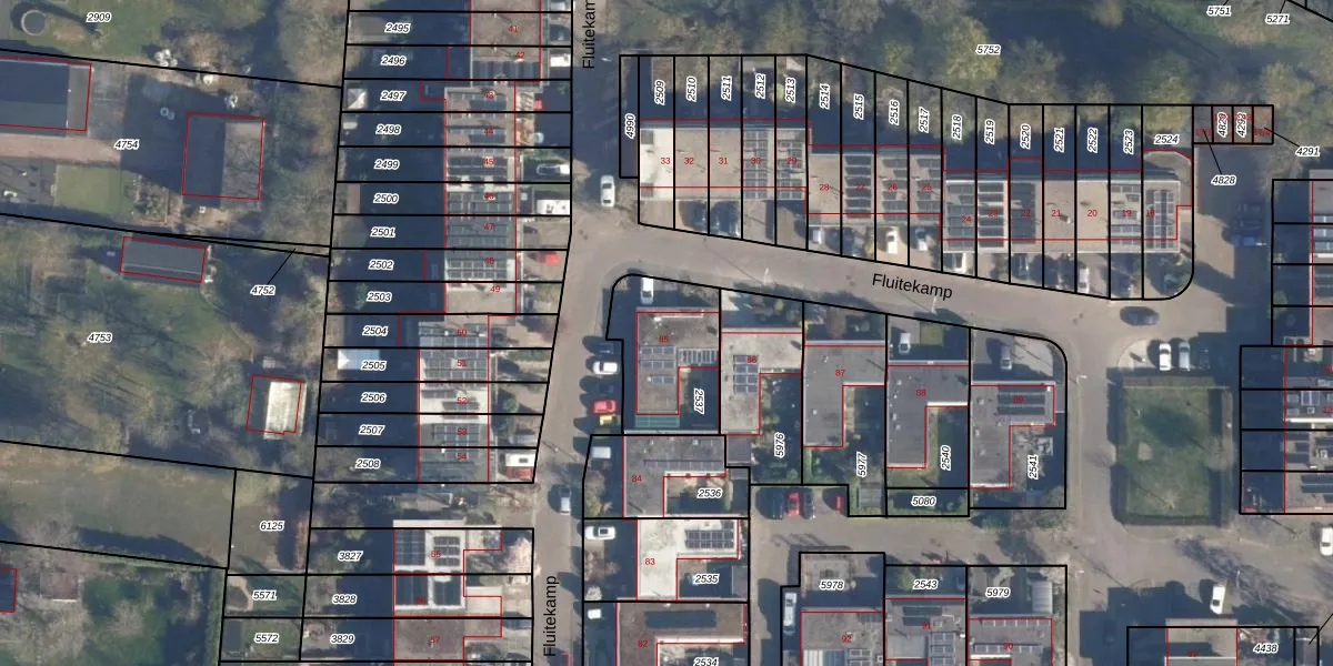 Het perceel waarop Fluitekamp 85 staat heeft een oppervlakte van 355 m². Dit is een groot perceel. De perceeloppervlakte wordt geregistreerd door het Kadaster. Gedetailleerde informatie over de maten van dit perceel kunt u vinden in het rapport Kadastrale kaart met maatvoering van Fluitekamp 85.