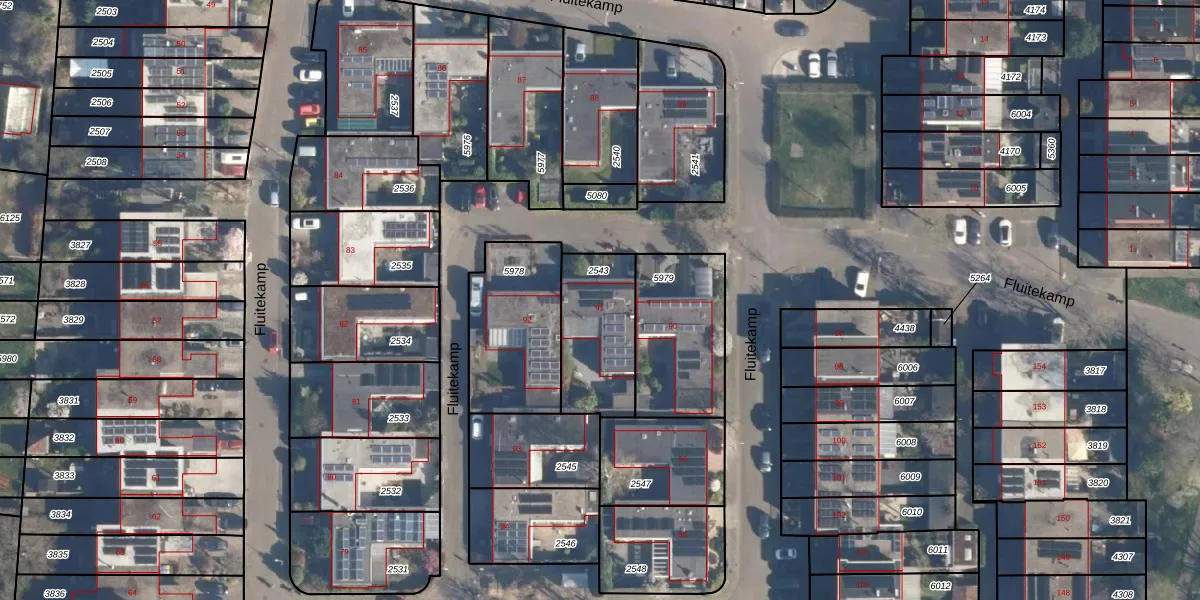 Fluitekamp 91 is gelegen op kadastraal perceel HLD02E2543. Deze kadastrale aanduiding is uniek en wordt gebruikt door het Kadaster om eigendomsrechten en andere zakelijke rechten vast te leggen. Het perceel maakt onderdeel uit van de kadastrale gemeente Hoogland.
