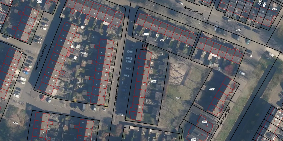 Griendwerkerstraat 78 is gelegen op kadastraal perceel HLD02D3025. Deze kadastrale aanduiding is uniek en wordt gebruikt door het Kadaster om eigendomsrechten en andere zakelijke rechten vast te leggen. Het perceel maakt onderdeel uit van de kadastrale gemeente Hoogland.