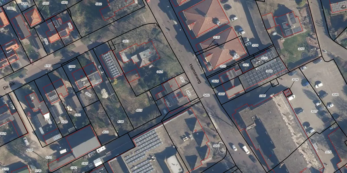 Gebruik de zoekbalk of klik op een perceel voor informatie over de adressen binnen dit perceel.