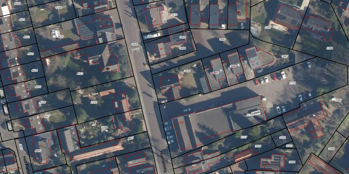 Het perceel waarop Hamseweg 49 staat heeft een oppervlakte van 558 m². Dit is een groot perceel. De perceeloppervlakte wordt geregistreerd door het Kadaster. Gedetailleerde informatie over de maten van dit perceel kunt u vinden in het rapport Kadastrale kaart met maatvoering van Hamseweg 49.