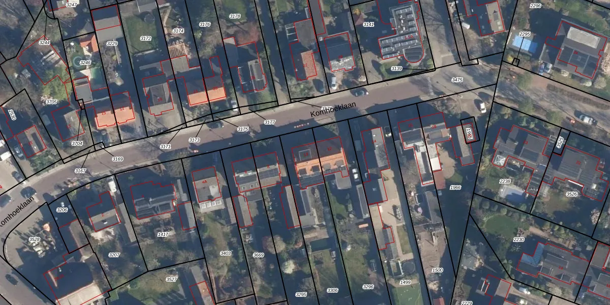 Komhoeklaan 10 is gelegen op kadastraal perceel HLD02D3306. Deze kadastrale aanduiding is uniek en wordt gebruikt door het Kadaster om eigendomsrechten en andere zakelijke rechten vast te leggen. Het perceel maakt onderdeel uit van de kadastrale gemeente Hoogland.