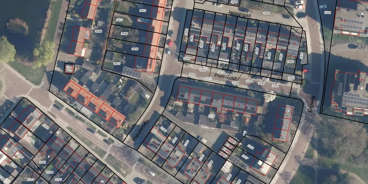 Het perceel waarop Prunuspad 1 staat heeft een oppervlakte van 2020 m². Dit is een zeer groot perceel. De perceeloppervlakte wordt geregistreerd door het Kadaster. Gedetailleerde informatie over de maten van dit perceel kunt u vinden in het rapport Kadastrale kaart met maatvoering van Prunuspad 1.