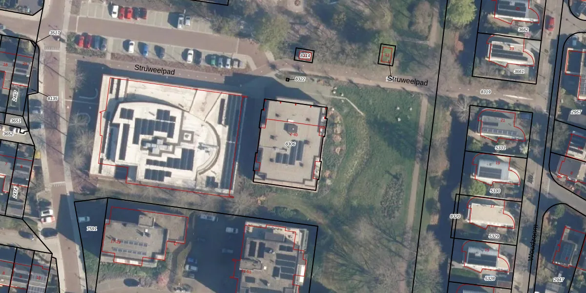 Het perceel waarop Struweelpad 16 staat heeft een oppervlakte van 630 m². Dit is een groot perceel. De perceeloppervlakte wordt geregistreerd door het Kadaster. Gedetailleerde informatie over de maten van dit perceel kunt u vinden in het rapport Kadastrale kaart met maatvoering van Struweelpad 16.