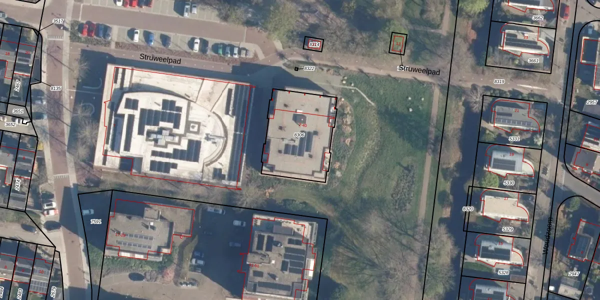 Het perceel waarop Struweelpad 36 staat heeft een oppervlakte van 630 m². Dit is een groot perceel. De perceeloppervlakte wordt geregistreerd door het Kadaster. Gedetailleerde informatie over de maten van dit perceel kunt u vinden in het rapport Kadastrale kaart met maatvoering van Struweelpad 36.