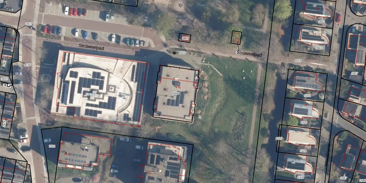 Struweelpad 8 is gelegen op kadastraal perceel AMF00O8306. Deze kadastrale aanduiding is uniek en wordt gebruikt door het Kadaster om eigendomsrechten en andere zakelijke rechten vast te leggen. Het perceel maakt onderdeel uit van de kadastrale gemeente Amersfoort.