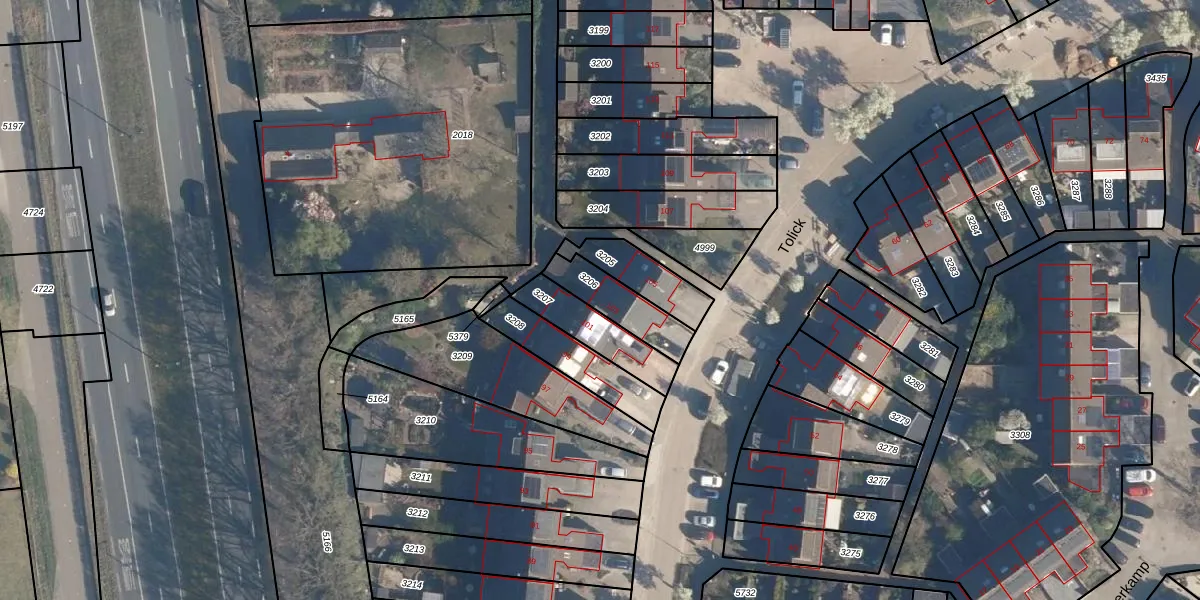 Gebruik de zoekbalk of klik op een perceel voor informatie over de adressen binnen dit perceel.