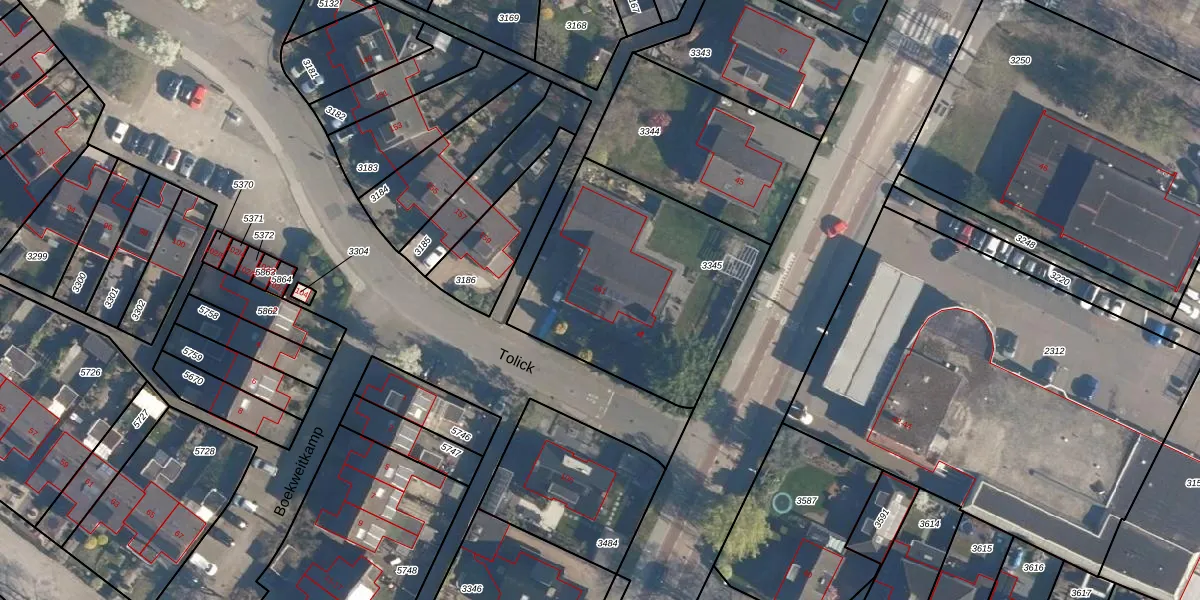 Het perceel waarop Tolick 161 staat heeft een oppervlakte van 1058 m². Dit is een zeer groot perceel. De perceeloppervlakte wordt geregistreerd door het Kadaster. Gedetailleerde informatie over de maten van dit perceel kunt u vinden in het rapport Kadastrale kaart met maatvoering van Tolick 161.