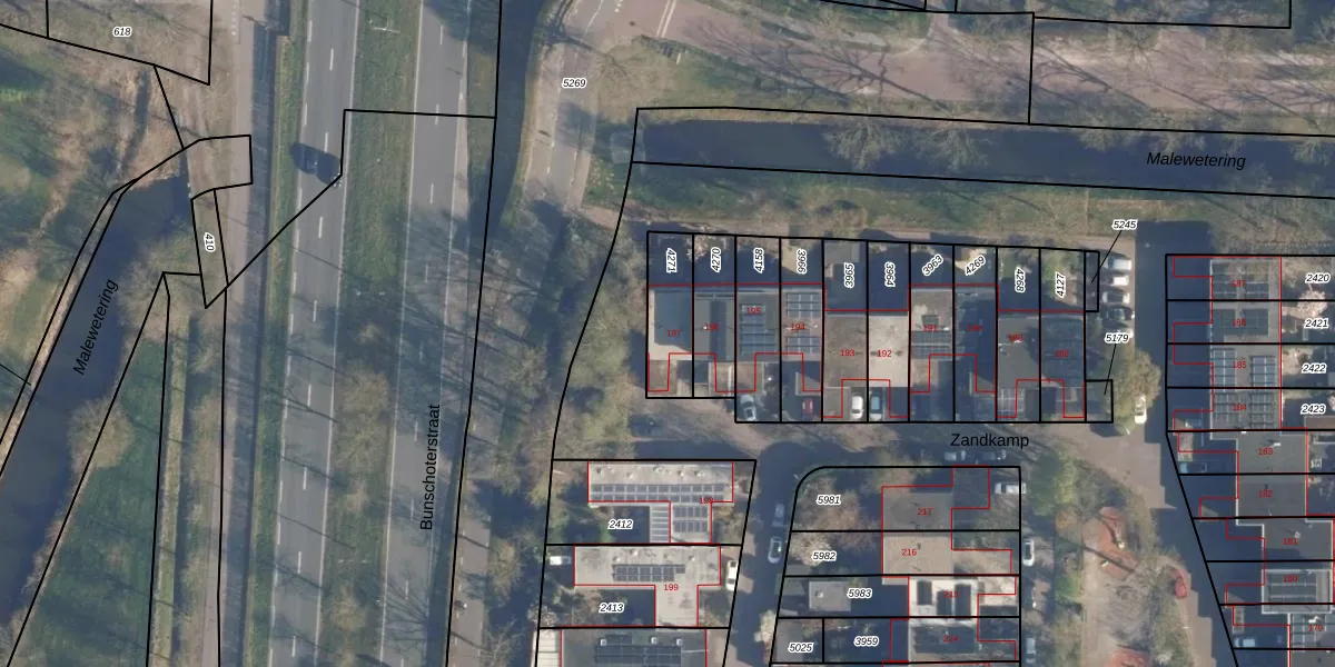 Het perceel waarop Zandkamp 197 staat heeft een oppervlakte van 167 m². Dit is een middelgroot perceel. De perceeloppervlakte wordt geregistreerd door het Kadaster. Gedetailleerde informatie over de maten van dit perceel kunt u vinden in het rapport Kadastrale kaart met maatvoering van Zandkamp 197.