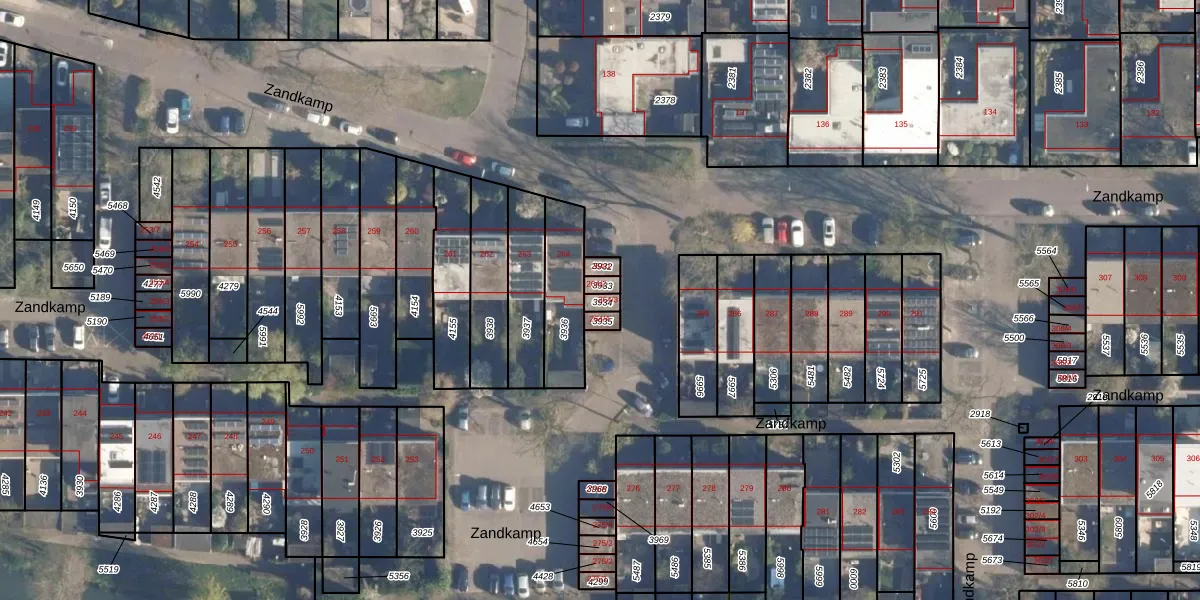 Het perceel waarop Zandkamp 264-3 staat heeft een oppervlakte van 18 m². Dit is een klein perceel. De perceeloppervlakte wordt geregistreerd door het Kadaster. Gedetailleerde informatie over de maten van dit perceel kunt u vinden in het rapport Kadastrale kaart met maatvoering van Zandkamp 264-3.