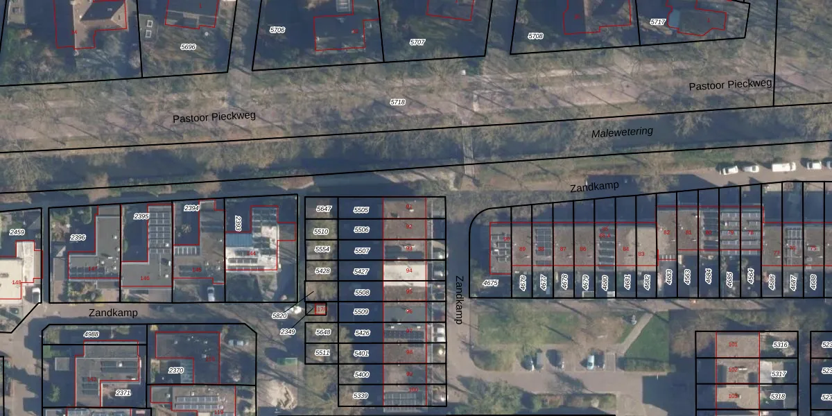 Het perceel waarop Zandkamp 91 staat heeft een oppervlakte van 136 m². Dit is een middelgroot perceel. De perceeloppervlakte wordt geregistreerd door het Kadaster. Gedetailleerde informatie over de maten van dit perceel kunt u vinden in het rapport Kadastrale kaart met maatvoering van Zandkamp 91.