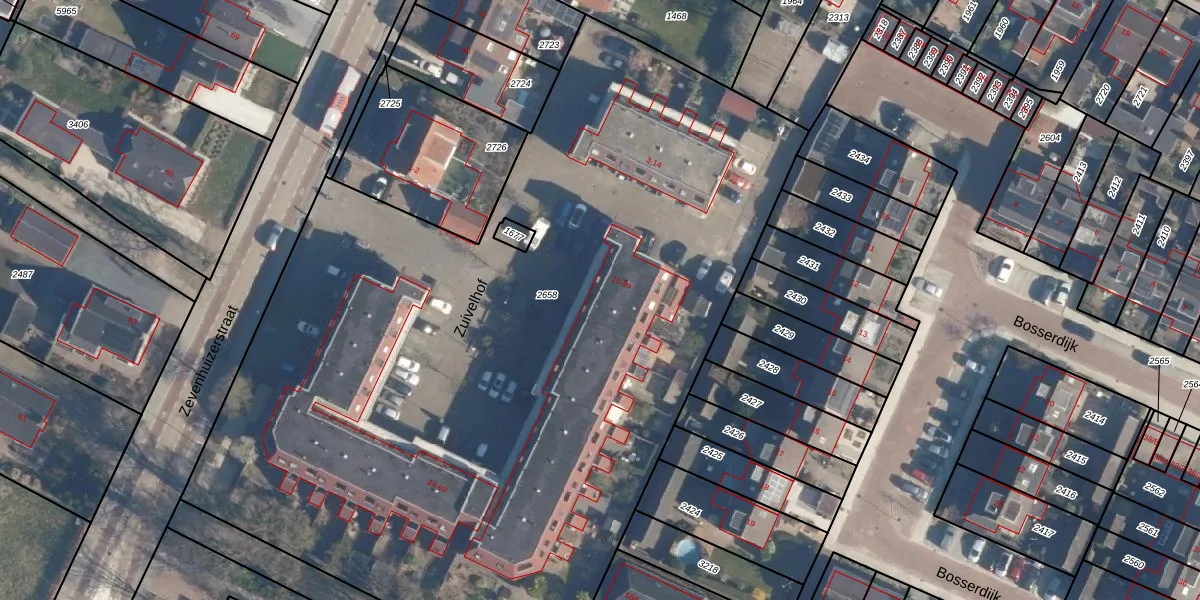 Het perceel waarop Zuivelhof 16 staat heeft een oppervlakte van 5980 m². Dit is een zeer groot perceel. De perceeloppervlakte wordt geregistreerd door het Kadaster. Gedetailleerde informatie over de maten van dit perceel kunt u vinden in het rapport Kadastrale kaart met maatvoering van Zuivelhof 16.