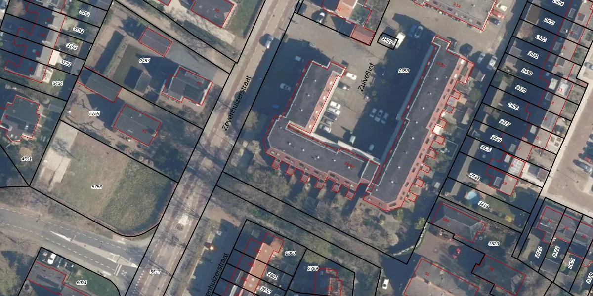 Het perceel waarop Zuivelhof 45 staat heeft een oppervlakte van 5980 m². Dit is een zeer groot perceel. De perceeloppervlakte wordt geregistreerd door het Kadaster. Gedetailleerde informatie over de maten van dit perceel kunt u vinden in het rapport Kadastrale kaart met maatvoering van Zuivelhof 45.