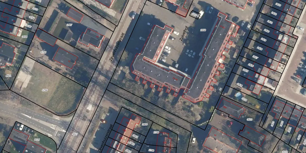 Het perceel waarop Zuivelhof 63 staat heeft een oppervlakte van 5980 m². Dit is een zeer groot perceel. De perceeloppervlakte wordt geregistreerd door het Kadaster. Gedetailleerde informatie over de maten van dit perceel kunt u vinden in het rapport Kadastrale kaart met maatvoering van Zuivelhof 63.