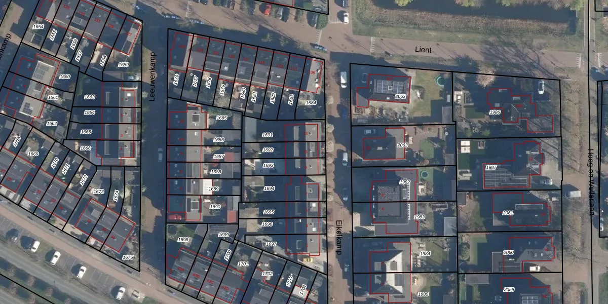 Gebruik de zoekbalk of klik op een perceel voor informatie over de adressen binnen dit perceel.