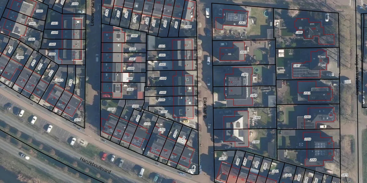 Het perceel waarop Eikelkamp 5 staat heeft een oppervlakte van 157 m². Dit is een middelgroot perceel. De perceeloppervlakte wordt geregistreerd door het Kadaster. Gedetailleerde informatie over de maten van dit perceel kunt u vinden in het rapport Kadastrale kaart met maatvoering van Eikelkamp 5.