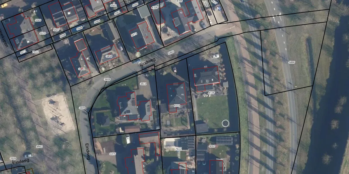 Eindweg 6 is gelegen op kadastraal perceel HLD02B8103. Deze kadastrale aanduiding is uniek en wordt gebruikt door het Kadaster om eigendomsrechten en andere zakelijke rechten vast te leggen. Het perceel maakt onderdeel uit van de kadastrale gemeente Hoogland.