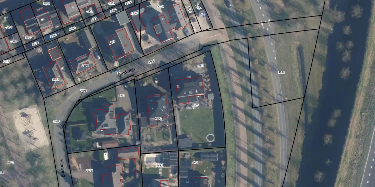 Het perceel waarop Eindweg 8 staat heeft een oppervlakte van 1239 m². Dit is een zeer groot perceel. De perceeloppervlakte wordt geregistreerd door het Kadaster. Gedetailleerde informatie over de maten van dit perceel kunt u vinden in het rapport Kadastrale kaart met maatvoering van Eindweg 8.