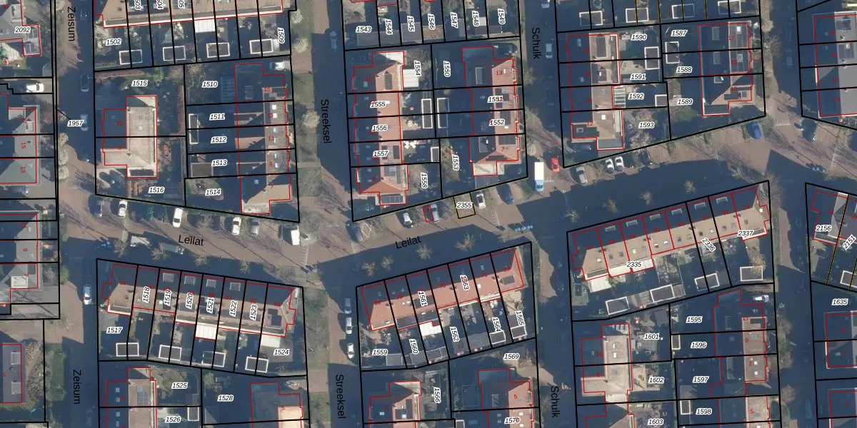 Het perceel waarop Leilat 4 staat heeft een oppervlakte van 8,5 ha. Dit is een zeer groot perceel. De perceeloppervlakte wordt geregistreerd door het Kadaster. Gedetailleerde informatie over de maten van dit perceel kunt u vinden in het rapport Kadastrale kaart met maatvoering van Leilat 4.