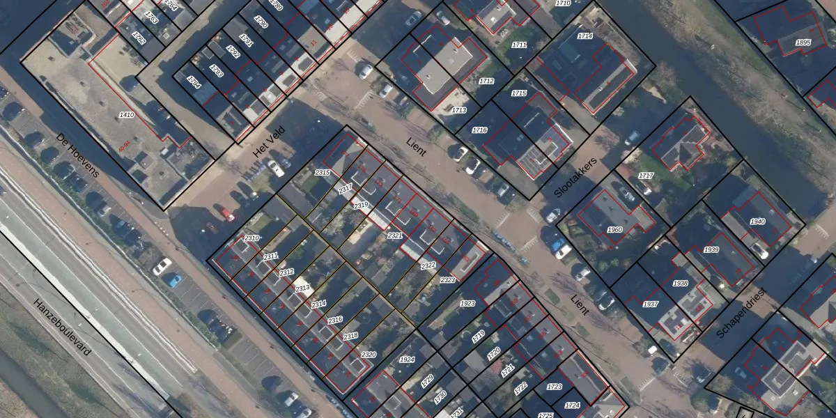 Het perceel waarop Lient 169 staat heeft een oppervlakte van 401 m². Dit is een groot perceel. De perceeloppervlakte wordt geregistreerd door het Kadaster. Gedetailleerde informatie over de maten van dit perceel kunt u vinden in het rapport Kadastrale kaart met maatvoering van Lient 169.