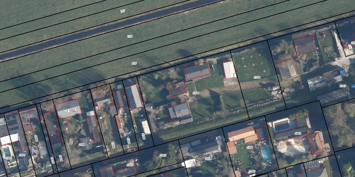 Het adres ligt op het perceel WBG00-A-1708, dat zich in de kadastrale gemeente Woubrugge bevindt. De gemiddelde perceelgrootte in Woubrugge is 4798,86 m². Dit perceel is kleiner: de perceeloppervlakte bedraagt 2150 m². Het grootste perceel in de kadastrale gemeente is 23,3 ha. Het kleinste perceel heeft een oppervlakte van 0 m². Op het perceel zijn 3 adressen aanwezig. De huidige grenzen van het perceel zijn digitaal in de Basisregistratie Kadaster (BRK) geregistreerd op 03-07-2019.