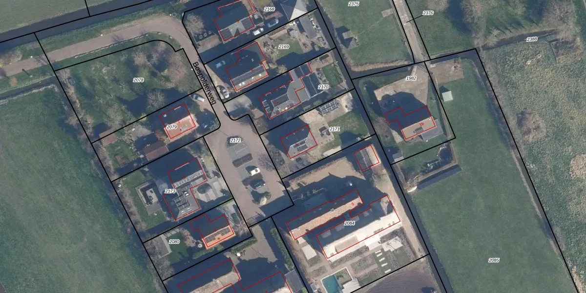 Bospolderweg 6 is gelegen op kadastraal perceel WBG00A2171. Deze kadastrale aanduiding is uniek en wordt gebruikt door het Kadaster om eigendomsrechten en andere zakelijke rechten vast te leggen. Het perceel maakt onderdeel uit van de kadastrale gemeente Woubrugge.