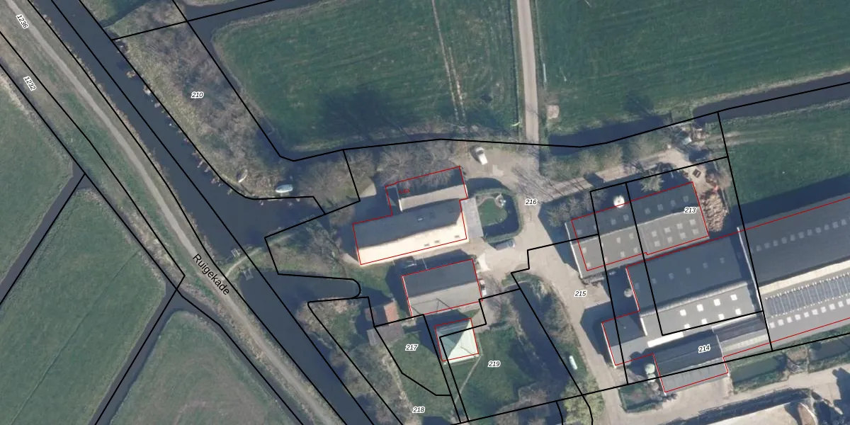 Het adres ligt op het perceel WBG00-A-216, dat zich in de kadastrale gemeente Woubrugge bevindt. Het perceel is kleiner dan gemiddeld in Woubrugge. Het perceel is 2460 m² groot, terwijl het gemiddelde ligt op 4798,86 m². Het kleinste perceel in de kadastrale gemeente is 0 m² groot. De grootste perceeloppervlakte is 23,3 ha. Op het perceel zijn 2 adressen aanwezig. In de Basisregistratie Kadaster (BRK) werden de grenzen van het perceel geregistreerd op 06-02-2002.
