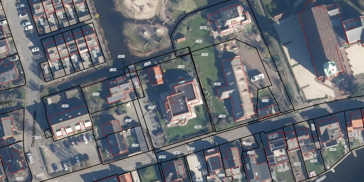 Het adres ligt op het perceel WBG00-D-1747, dat zich in de kadastrale gemeente Woubrugge bevindt. De gemiddelde perceelgrootte in Woubrugge is 4795,42 m². Dit perceel is kleiner: de perceeloppervlakte bedraagt 1483 m². Het grootste perceel in de kadastrale gemeente is 23,3 ha. Het kleinste perceel heeft een oppervlakte van 0 m². Er zijn 5 adressen aanwezig op het perceel. De huidige grenzen van het perceel zijn digitaal in de Basisregistratie Kadaster (BRK) geregistreerd op 15-07-2014.